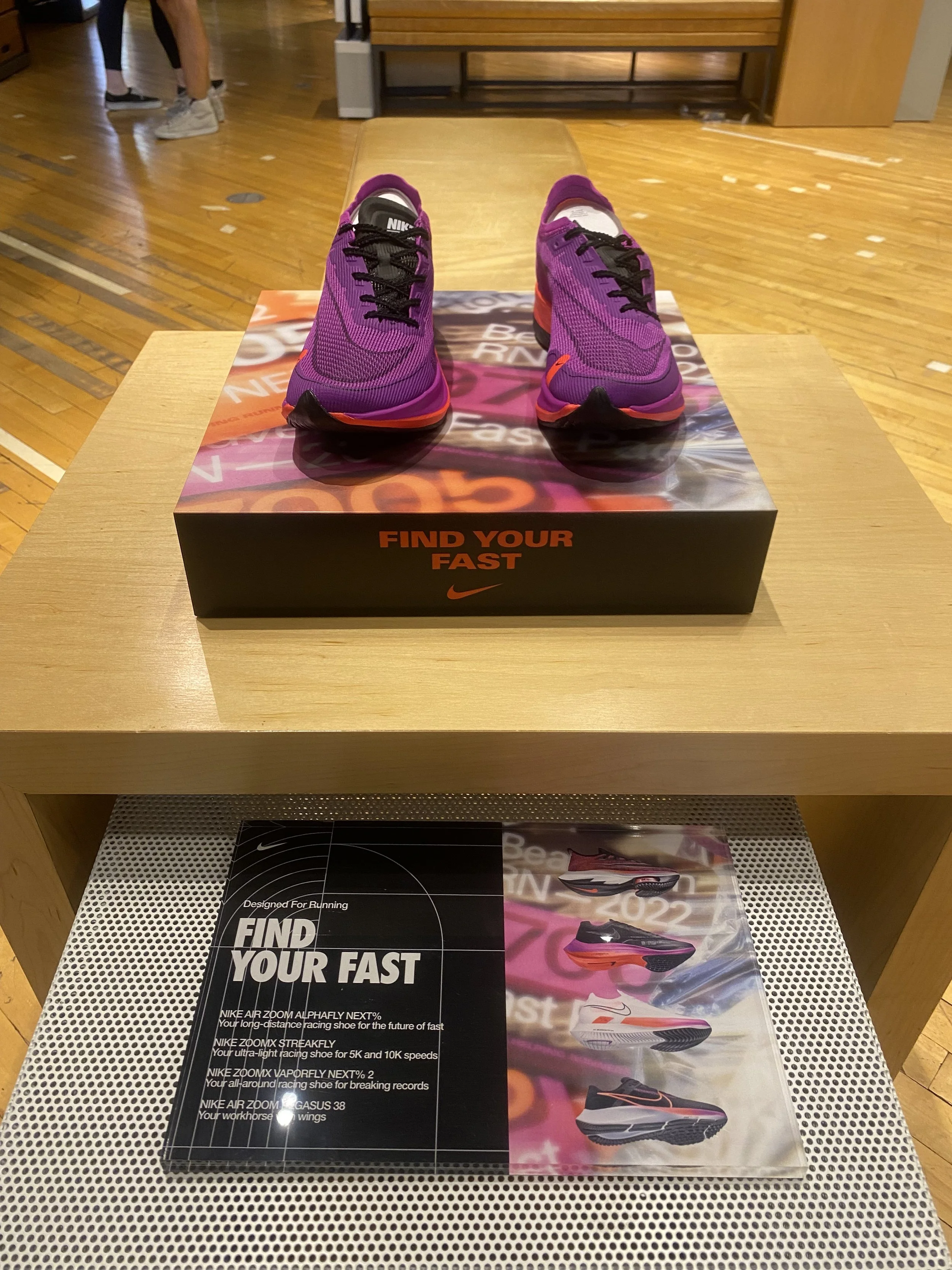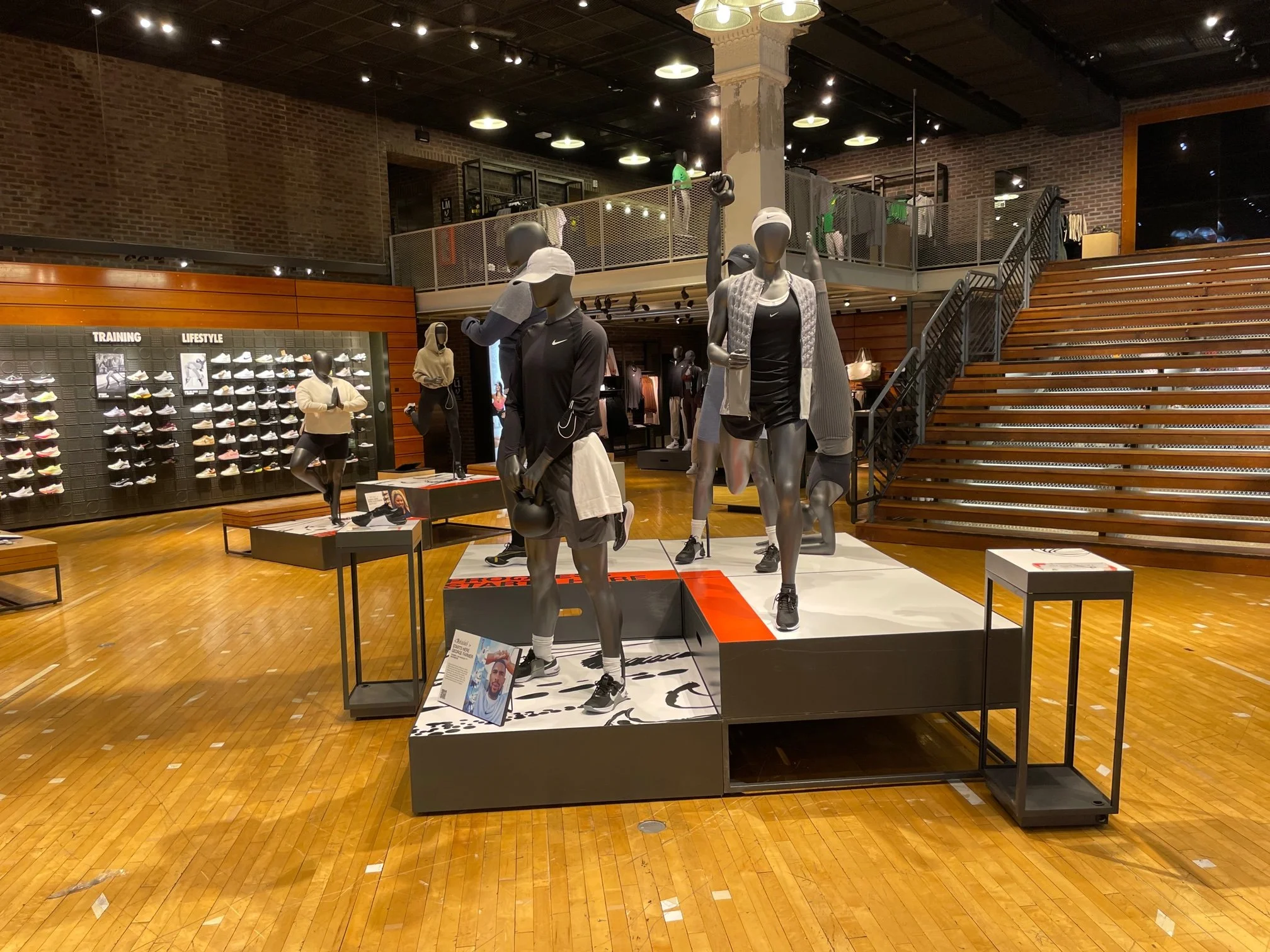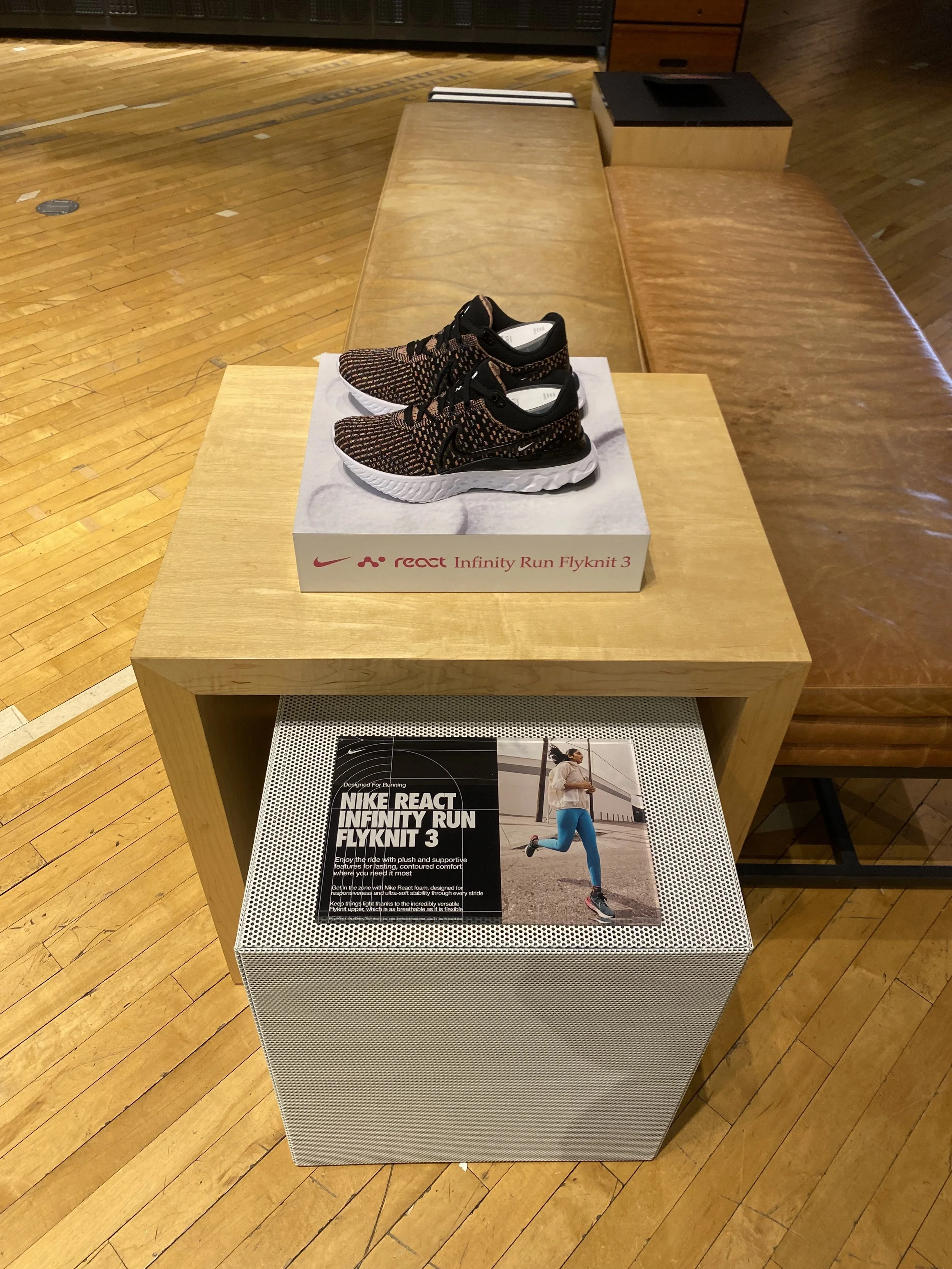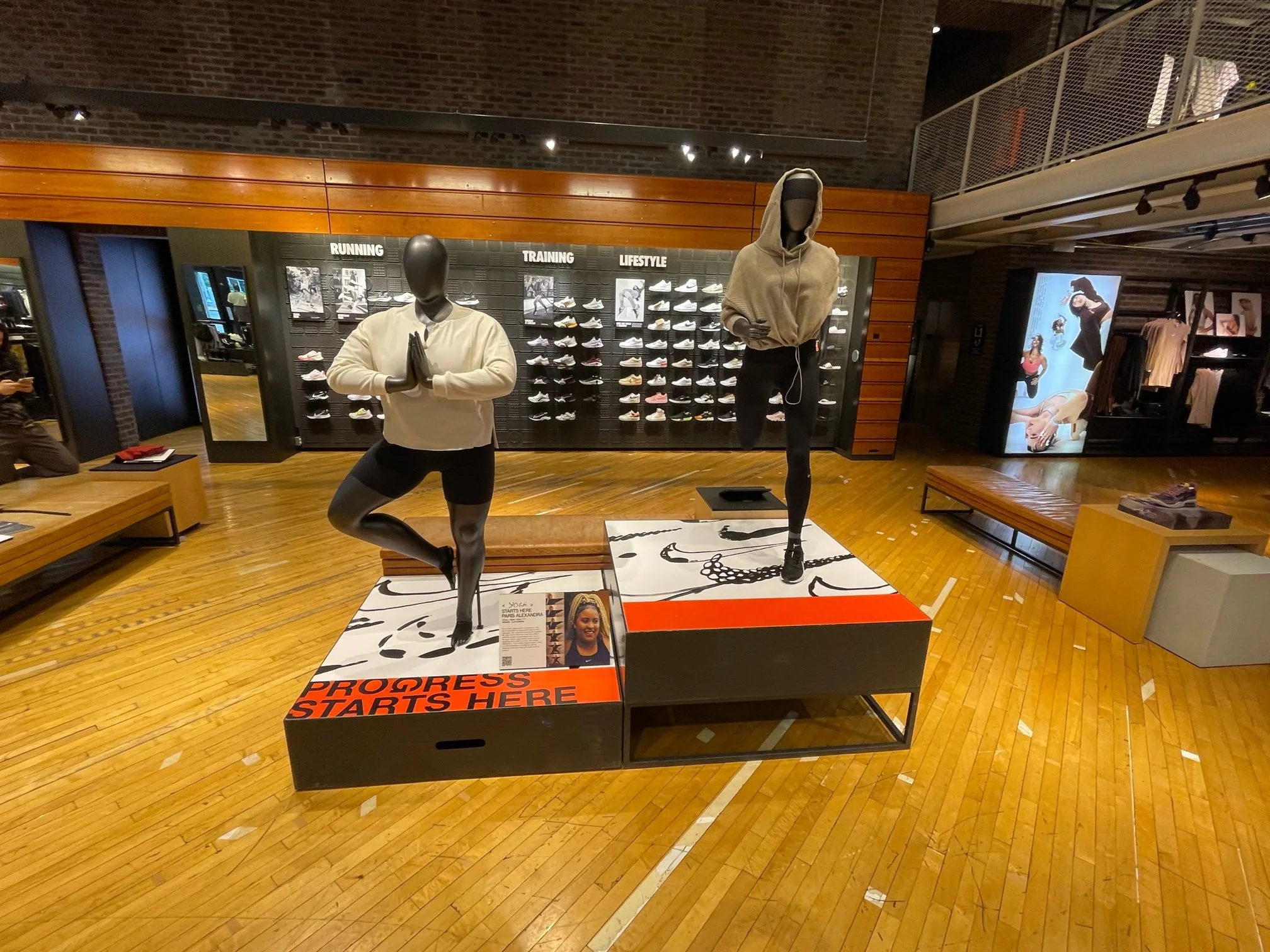 For the 2021 Miami marathon, I had the opportunity to create a store takeover moment to highlight Nike’s running shoes. This included the design of large scale window graphics with cut vinyl, the footprint of the mannequin display, hanging banners, cling graphics for the changing room, shoe display pedestals, and signage. All of these design elements came together to create a cohesive and immersive consumer experience aimed at educating and exiting the consumer about Nike’s running shoes and at supporting digital environments for runners to connect and push themselves further.